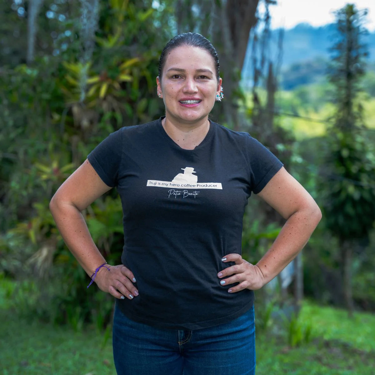 Paola Trujillo grew up on her father’s farm, Patio Bonito, in Caldono, Cauca, a place that has been producing coffee for over 40 years. Her father, Don Carlos Trujillo, focuses on sustainable farming, while Paola brings her own expertise to the fermentation and processing side of things having spent many years previously working as a cupper and buyer in Nariño and Huila for an exporting company. After returning to the farm in 2022, she has innovated how they process their washed and natural coffees, including “thermal shock” and anaerobic modulations to their processes.